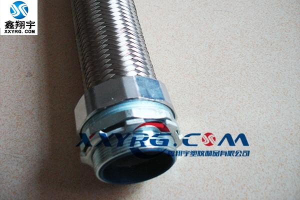 外層不銹鋼絲編織(鍍鉻黃銅編織),防爆、抗磨損及抗電磁干擾屏蔽作用,增強了拉力強度和防爆功能,耐腐蝕,廣泛使用于冶金化工等行業(yè).不銹鋼絲選用優(yōu)質(zhì)SUS304/SUS301材質(zhì),其中SUS304[0Cr18Ni9Ti]選用0.18毫米直徑細絲,絲質(zhì)光滑柔軟,色澤潔白如銀,鋼絲永不生銹,接口永不炸頭XY-0609不銹鋼防爆軟管適用范圍:工業(yè)機械設備電線電纜保護;特別適用于危險潮濕環(huán)境;